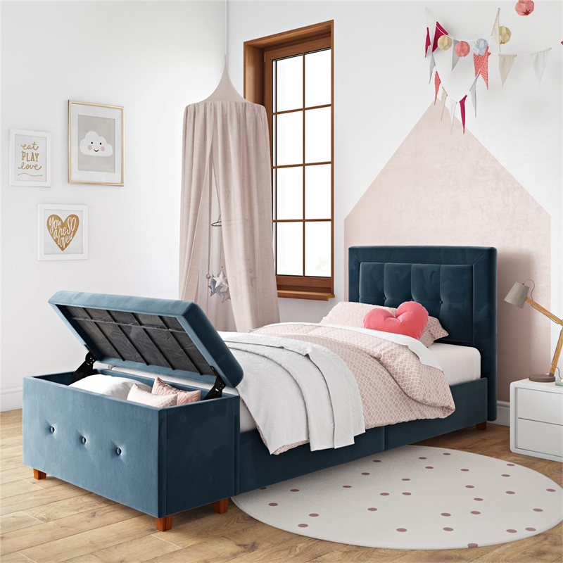 Wanda platform king bed with storage brooklyn navy blue velvet queen tufted panel bed headboard and footboard set. Lots of bed frames with storage underneath can look chunky and inelegant. We carry platform beds in king & queen, platform bed sets, storage beds and platform bed frames. Discount prices & free shipping on most! Extended elegance and concealed storage make the meridian furniture inc bliss velvet platform storage bed a dreamy storage abounds on this platform bed, which comes equipped with two drawers in the footboard